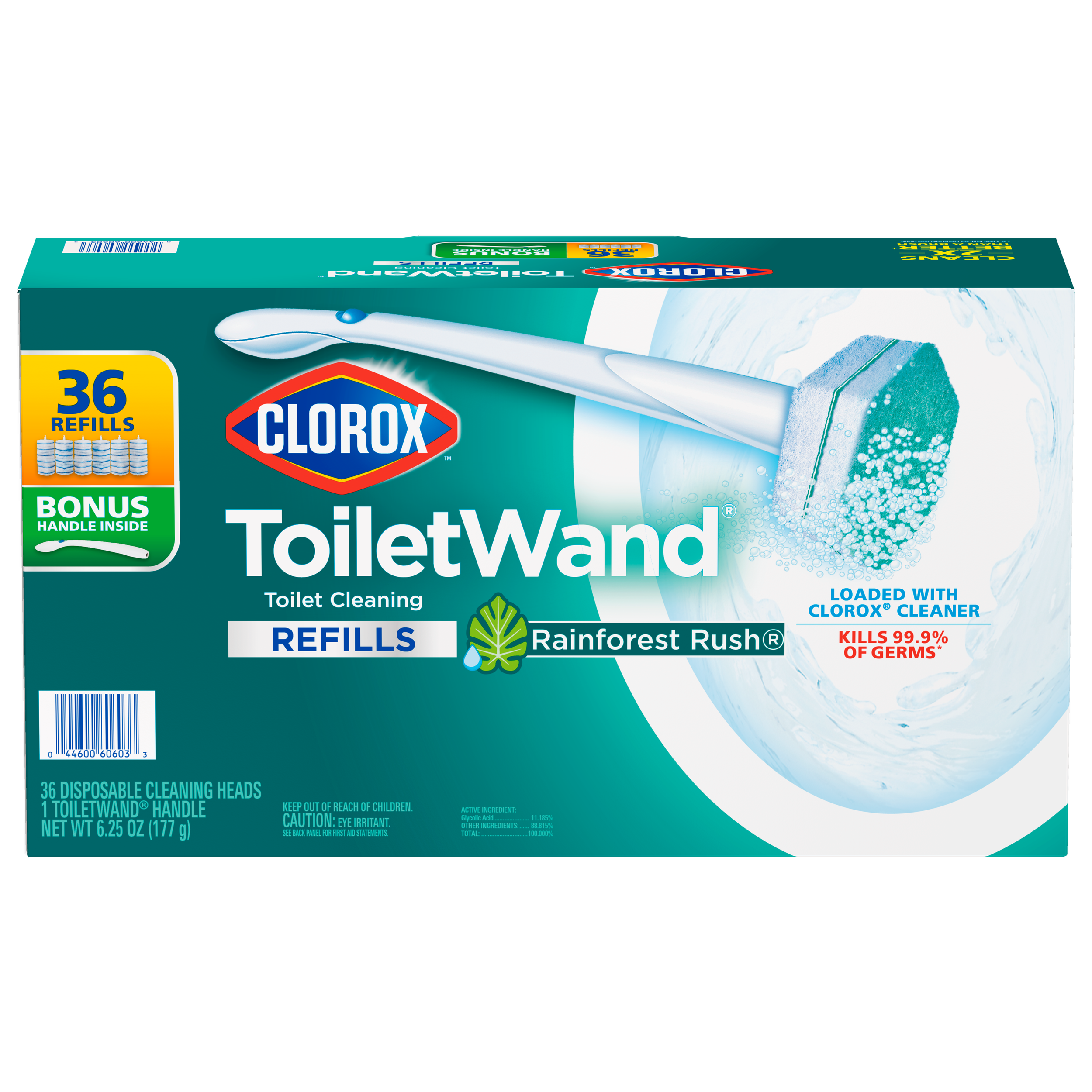 Clorox ToiletWand Toilet Cleaning Kit, Rainforest Rush, 1 ToiletWand Handle + 36 Refills