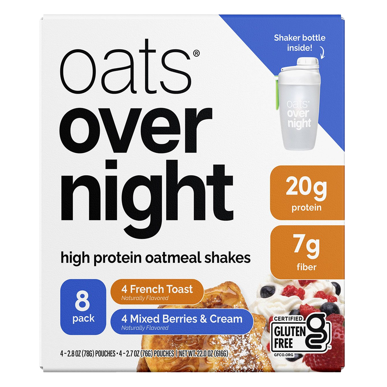 Oats Overnight High Protein Oatmeal Shake Variety Pack, 8 pk.