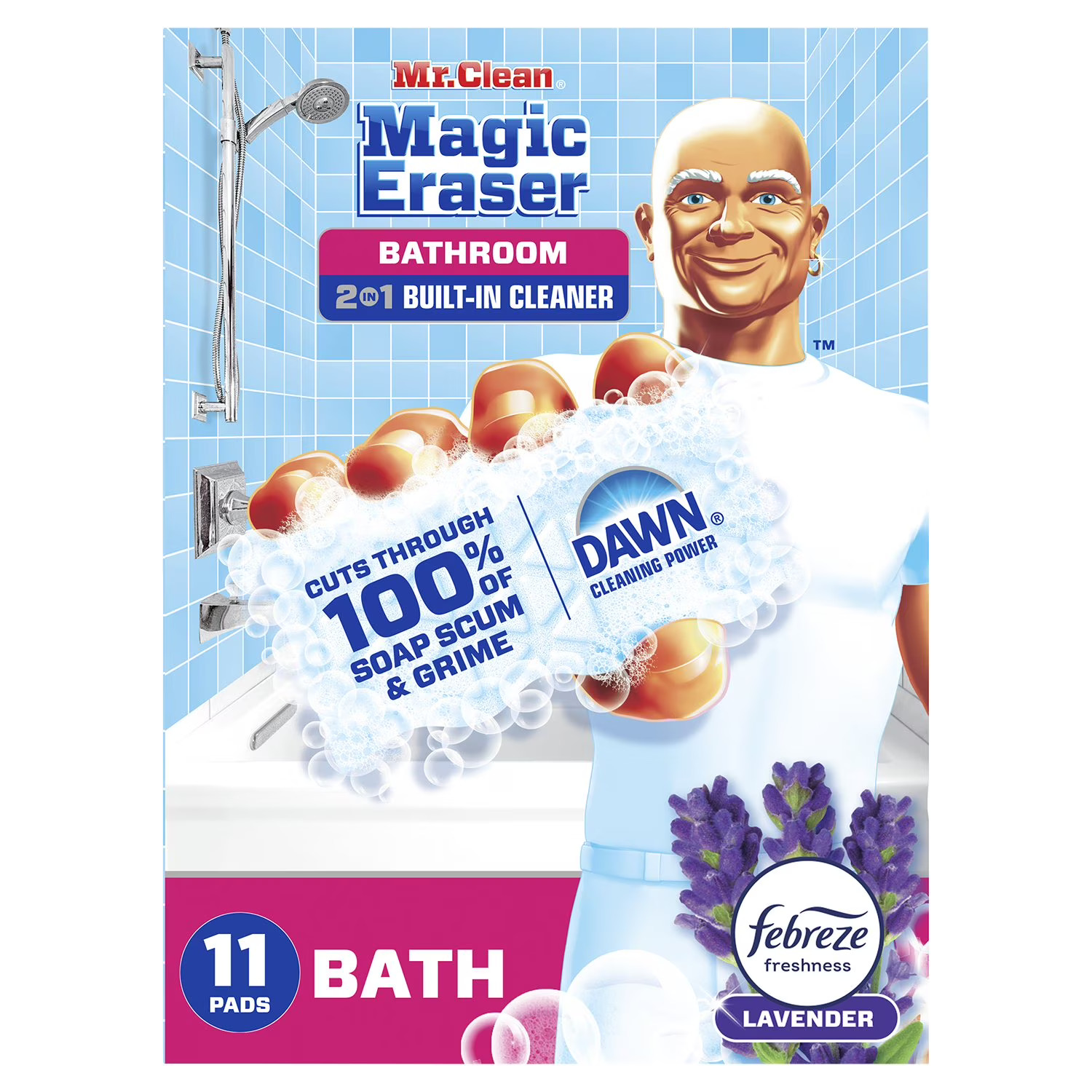 Mr. Clean Magic Eraser 2-in-1 Bathroom Cleaner Sponge, Lavender, 11 ct.